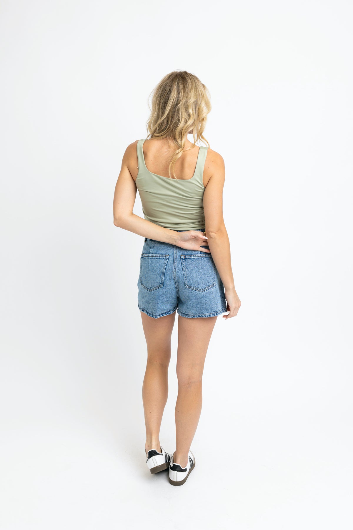 The perfect basic to add to your closet! A tank top inspired bodysuit that works great with a cute maxi skirt and is perfect for layering. Available in black (not pictured) and olive (pictured).