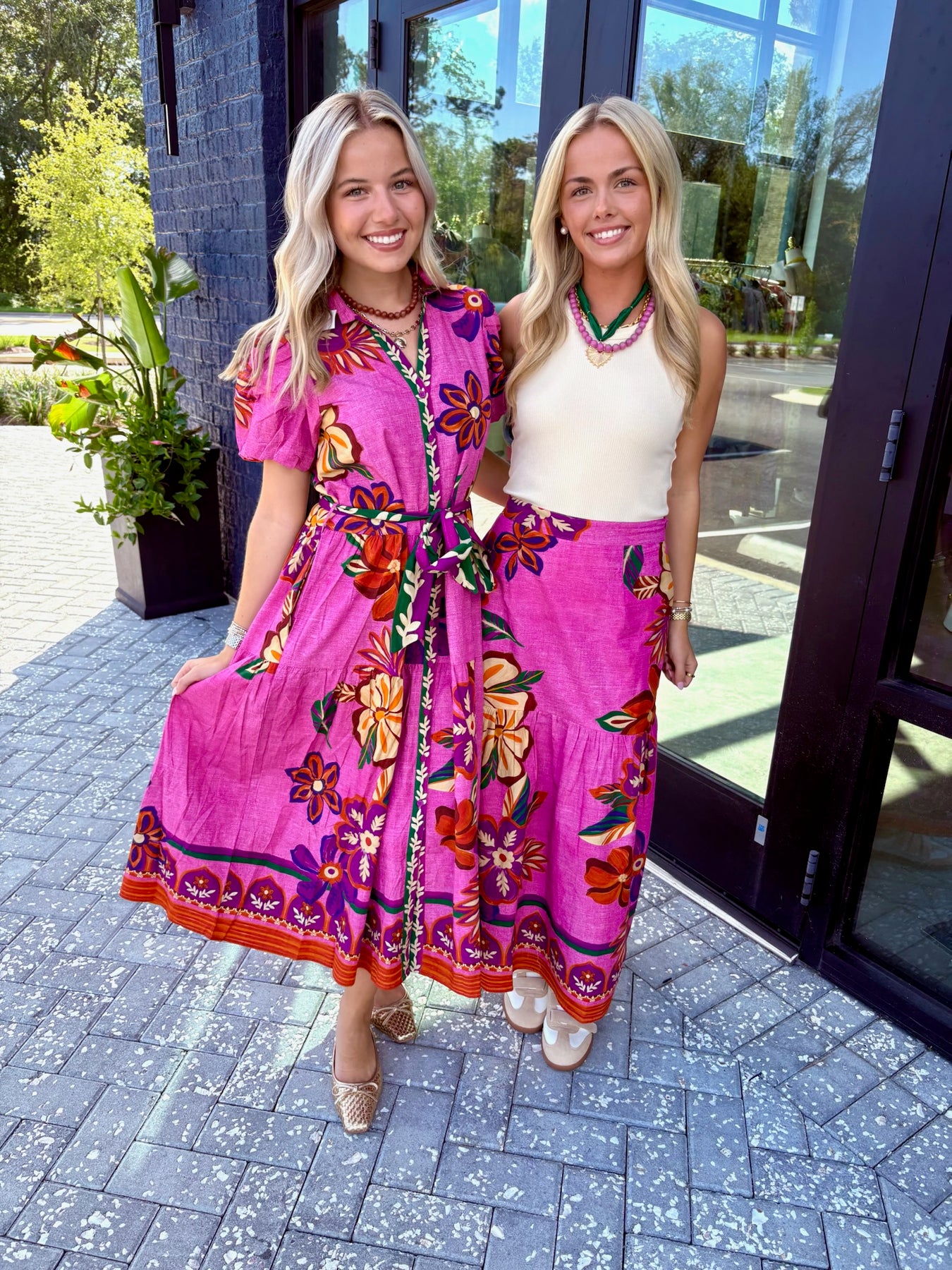 This maxi skirt is so cute and perfect for fall! Pair this print with a basic top or bodysuit and you're good to go! This fun print is also available in dress form in the Della Dress!