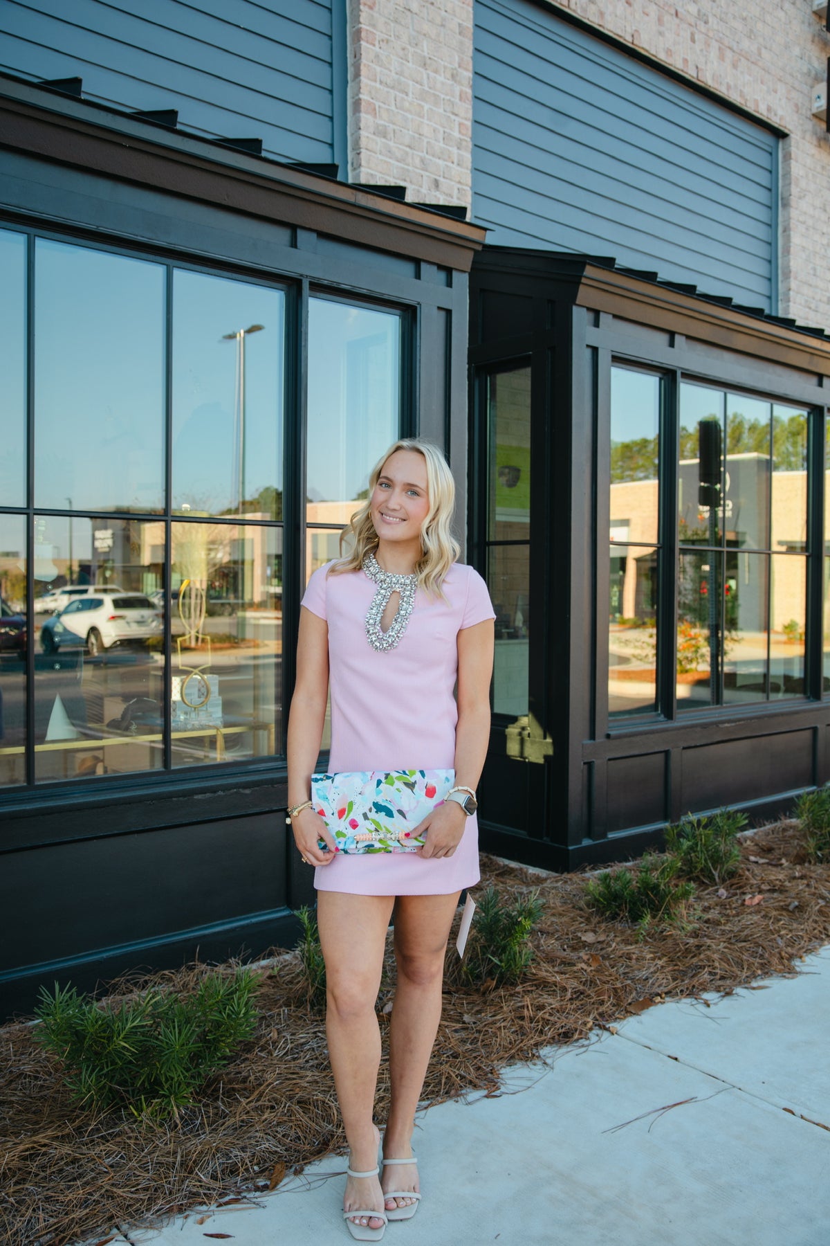 Jewel Trim Baby Pink Mini Dress