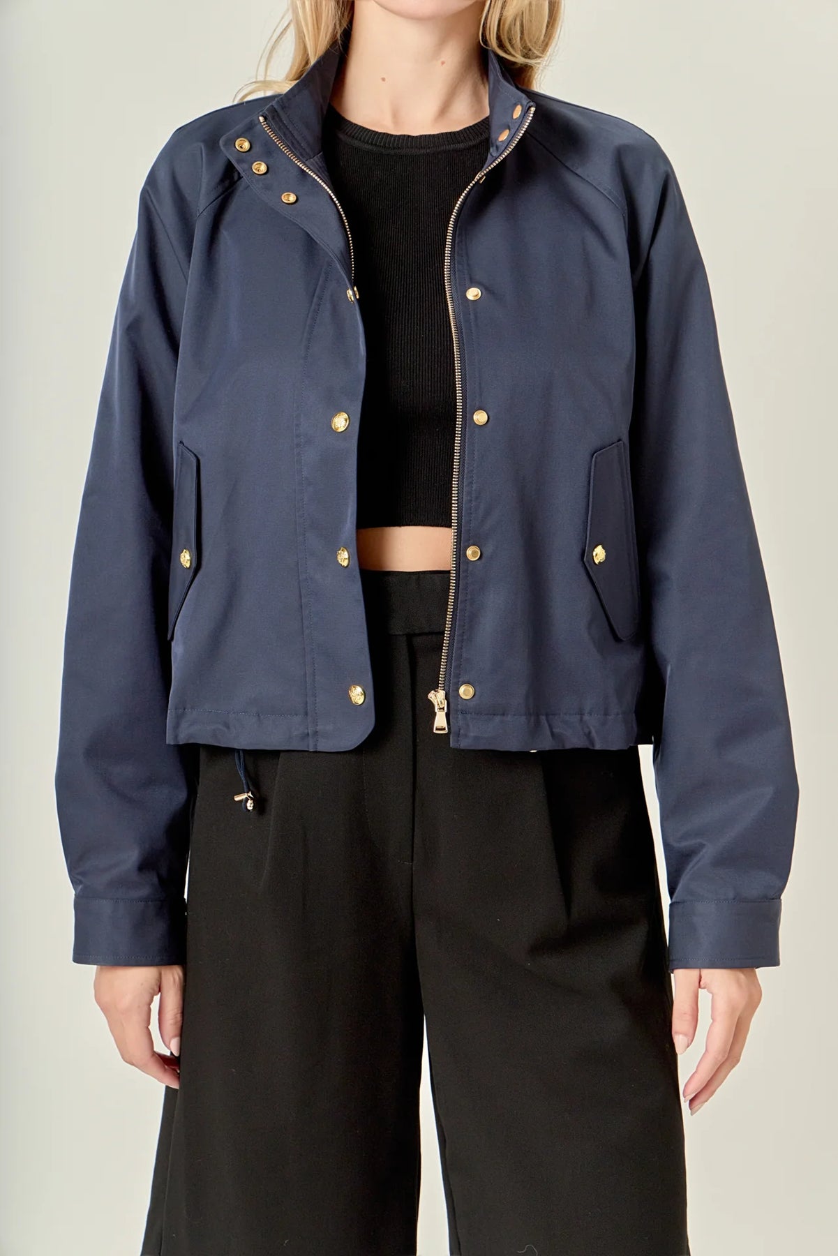 Meet your go-to outerwear essential: the Lightweight Bomber Jacket. Designed with clean lines and functional flair, this sleek jacket features a high stand collar, subtle gold-tone snap buttons, and a hidden zip closure for a streamlined finish. Crafted from lightweight, durable fabric, it's perfect for layering across seasons. Thoughtfully placed flap welt pockets keep your hands warm and essentials close. With its modern fit and casual-cool attitude, this versatile piece transitions effortlessly from weekdays to weekends.