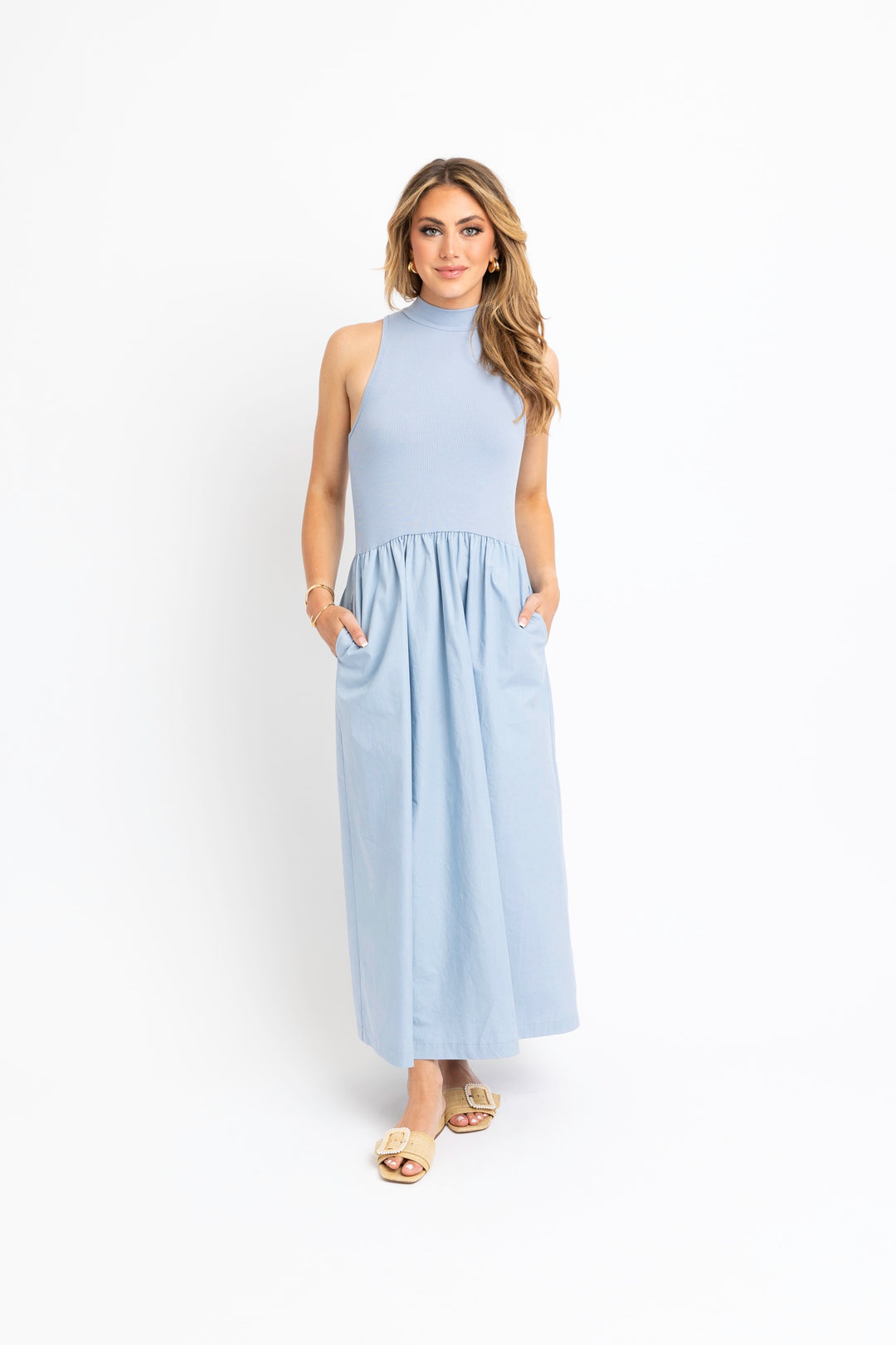 Blue Mockneck Maxi Dress