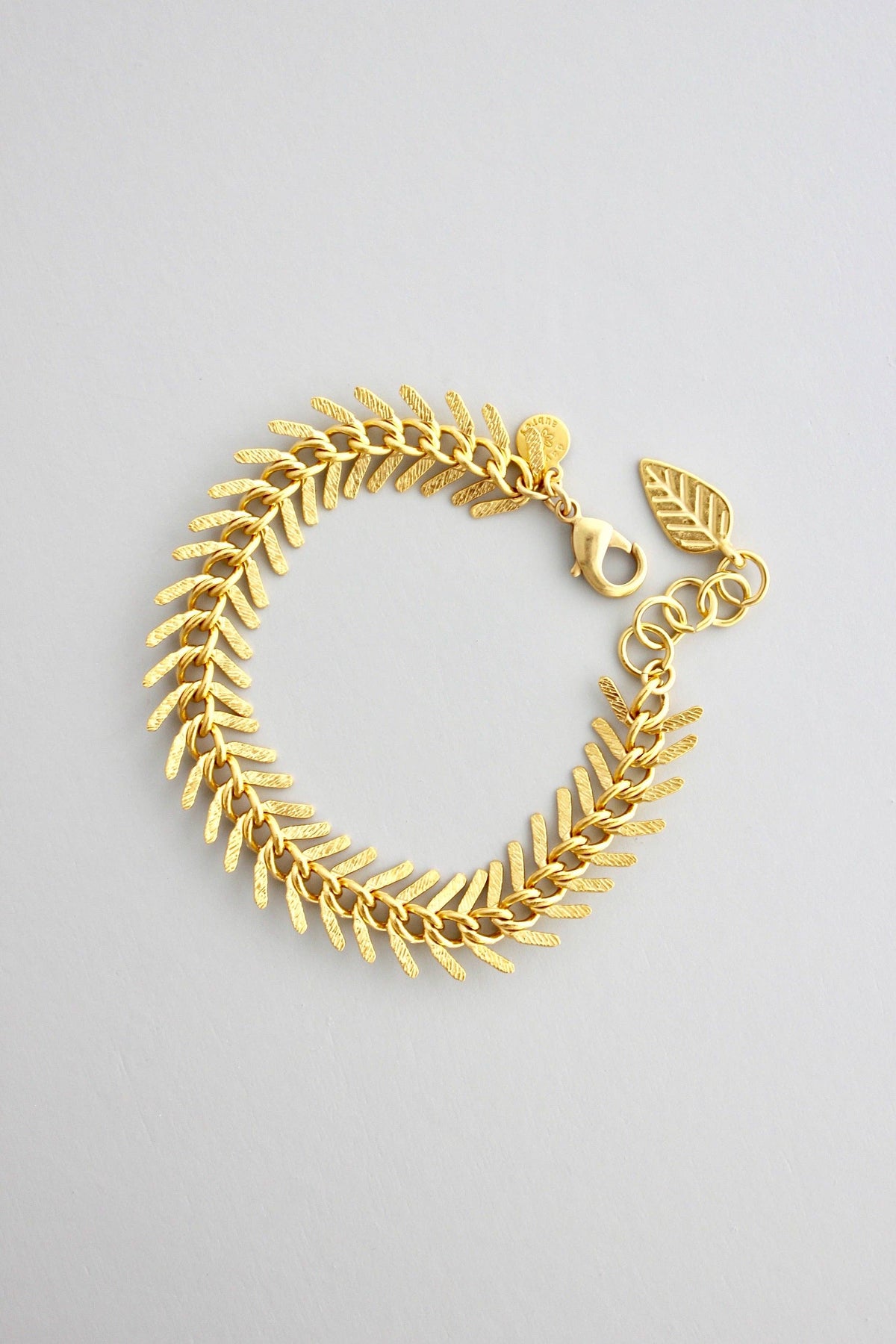 18k gold plated fishbone brass chain bracelet with one inch extender