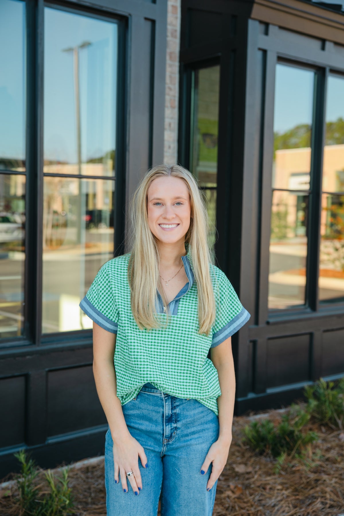 Green Gingham Top