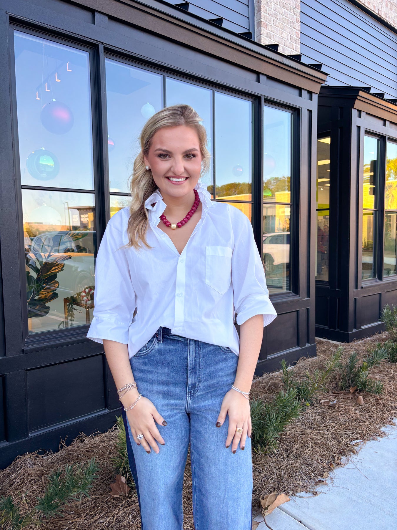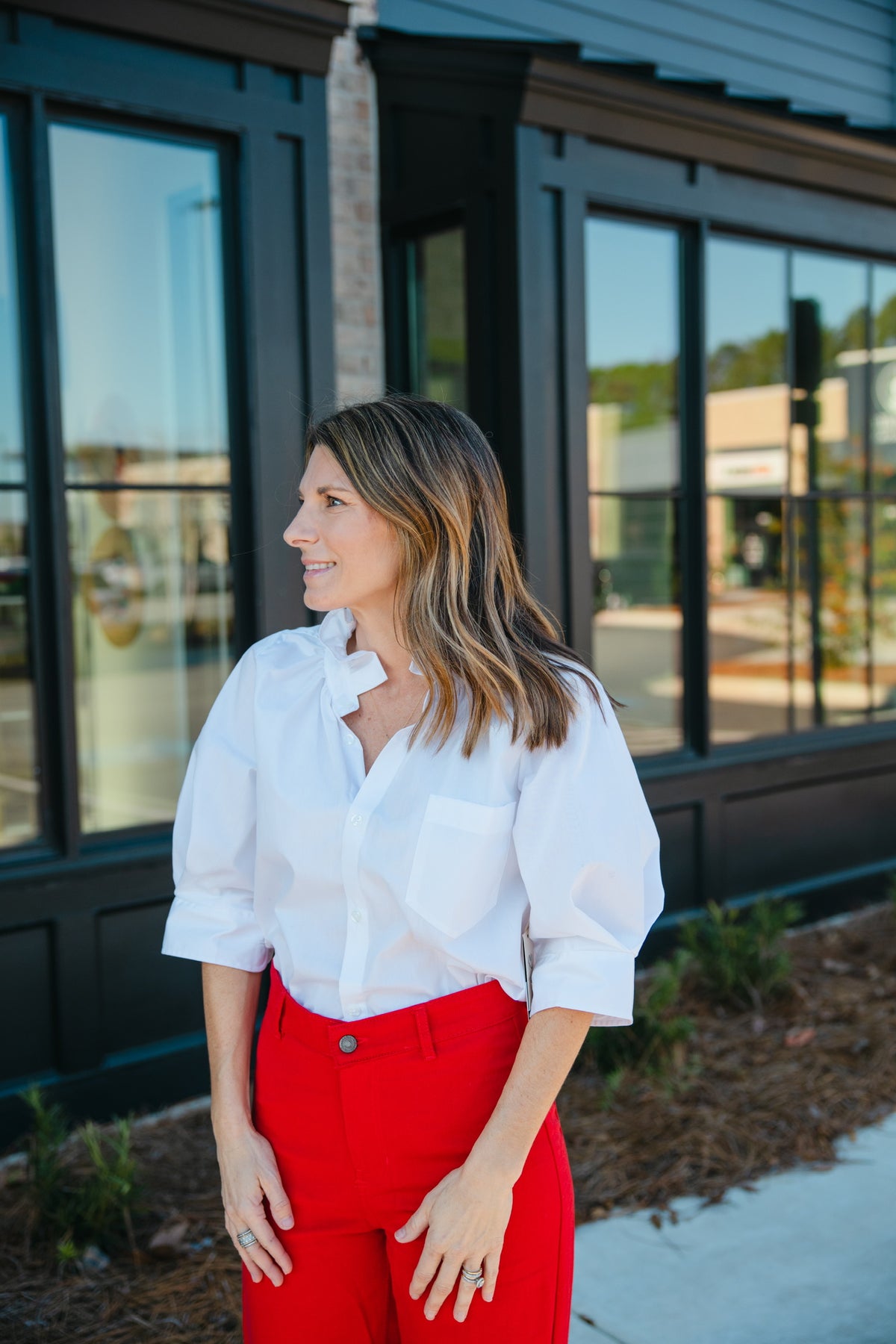 This Southern-inspired delight has 3/4 puff sleeves that gracefully sit right above the elbow. Accentuated by an inverted pleat at the cuff and adorned with a ruffle collar, this gal gives you the confidence you need to conquer the day.