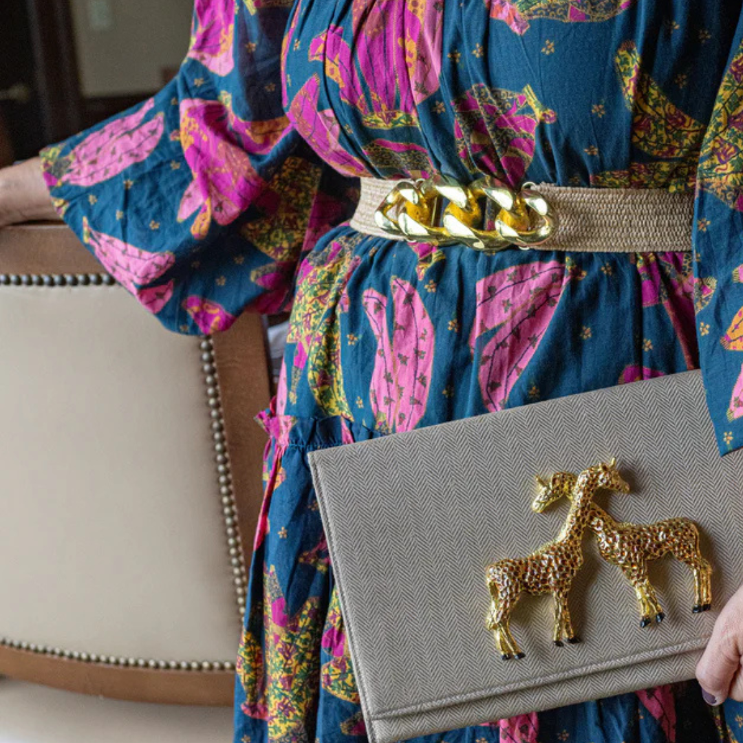 The bold Chain Link Artisan Belt Buckle exudes edgy elegance with its striking chain link design. Expertly crafted from durable zinc alloy with a radiant metallic gold-tone finish, this buckle is a statement-making accessory that instantly elevates any outfit. This buckle is compatible with all of our individual stretch belt bands, and offers endless versatility for mixing and matching with tailored jackets, flowy dresses, or sleek jumpsuits. This bold buckle adds a distinctive touch to casual and formal looks alike.
